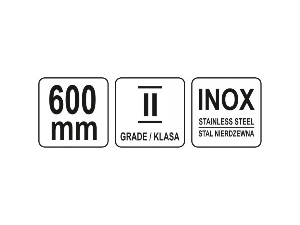 Flexibilis vonalzó II. osztályú pontossággal. Rozsdamentes acélból készült. Mindkét oldalán állandóan alkalmazott milliméteres skála. Szélessége 28 mm, teljes hossza 629 mm, vastagsága 1,1 mm, a hátoldalán menetértékeket átváltó táblázatok. Pontos mérésekhez és jelöléshez lakatosmunkában, mechanikai, dekoratív, stb.