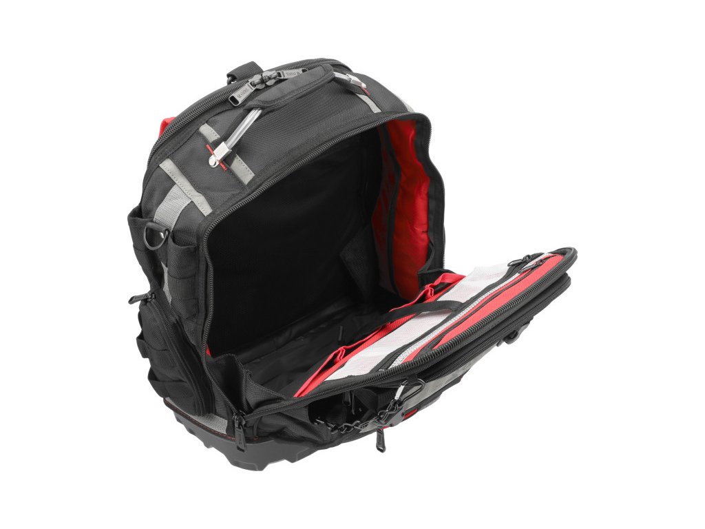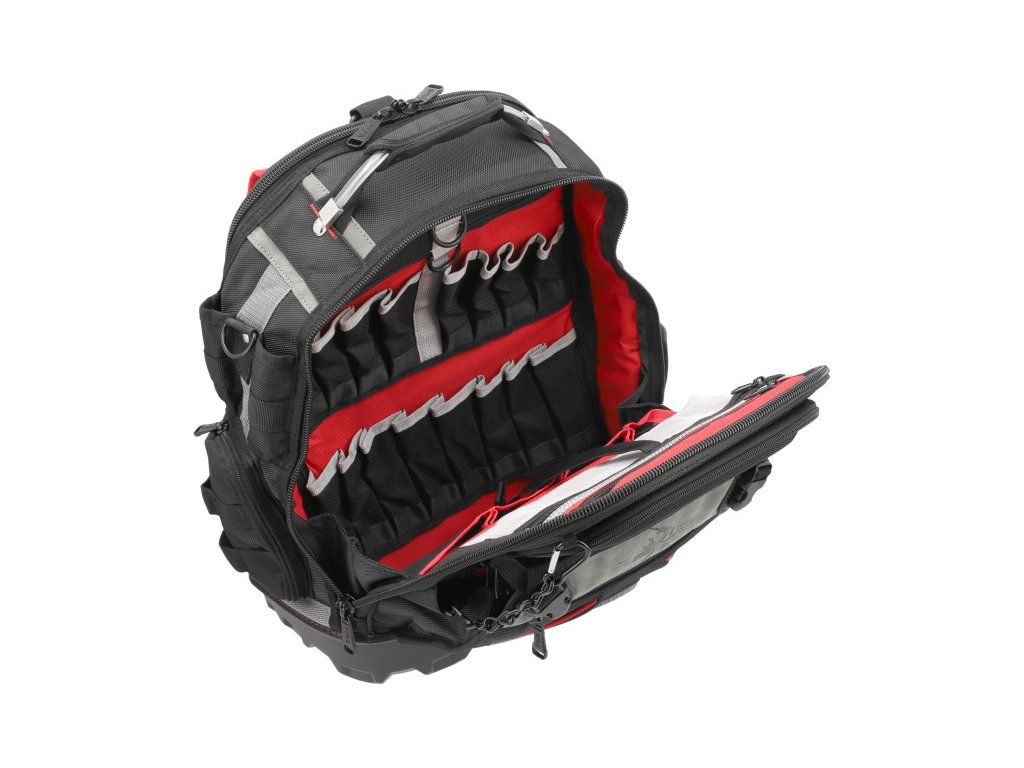 Gyakorlati és rendkívül robosztus hátizsák kiváló minőségű, megerősített nylonból. Tökéletes a munkához szükséges szerszámok szállítására. Számos további zseb lehetővé teszi a szerszámok és tartozékok rendezett tárolását, valamint értékes felszerelés, például pénztárca, telefon, dokumentumok biztonságos elhelyezését egy zárható rekeszben.
