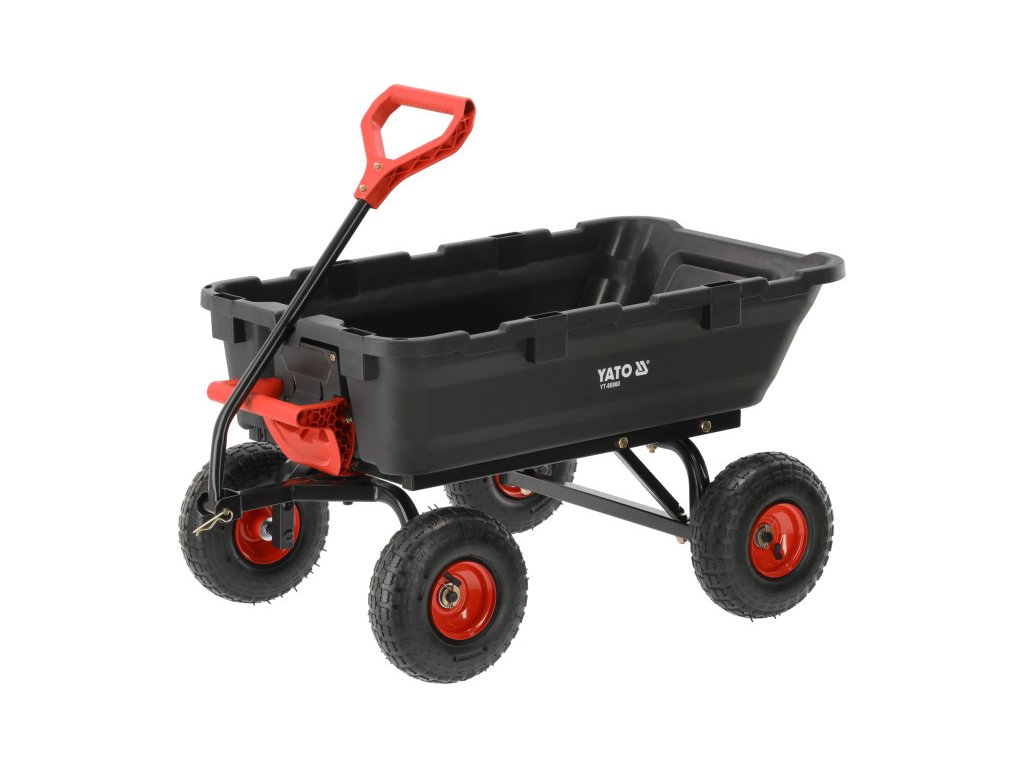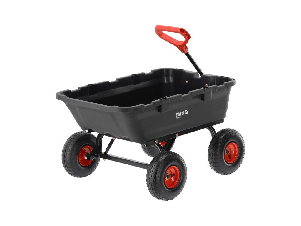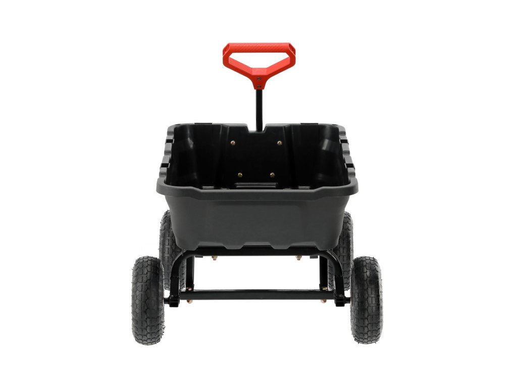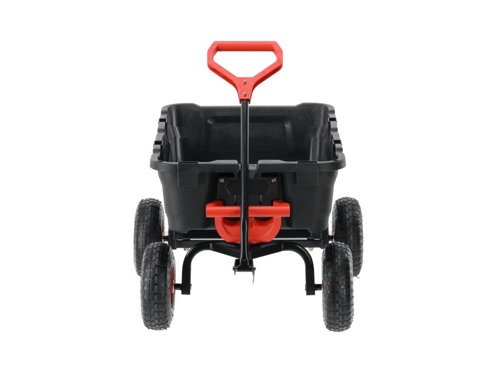 Többfunkciós XL méretű kocsi, mely számos otthoni és kerti munka megkönnyítésére szolgál. A billentési funkció lehetővé teszi a talaj, homok, fa vagy kerti hulladék könnyű kiürítését, csökkentve ezzel a felhasználó erőfeszítéseit. A nagy, felfújható kerekek 10"-es átmérőjű futófelülete stabilitást és könnyű mozgást biztosít egyenetlen talajon, míg a forgatható első tengely növeli a manőverezhetőséget.