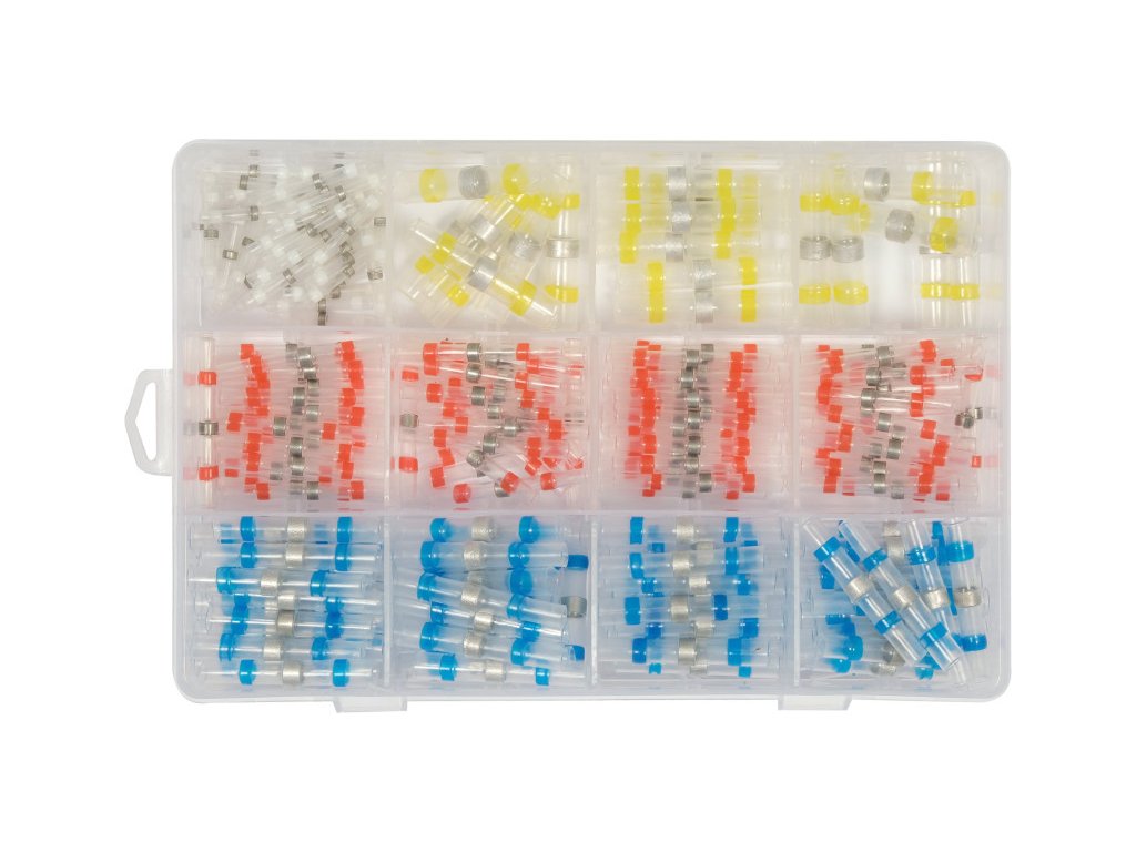 YT-81460 átlátszó hőre zsugorodó cső készlet, középen ón gyűrűvel és a szélein hőre aktiválódó ragasztó gyűrűkkel, ami további szigetelést biztosít a kapcsolatnál.