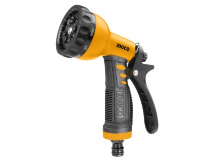 Nastaviteľná zavlažovacia pištoľ v 9 polohách TPR potiahnutá pohodlná mäkká rukoväť Plastová stopka Rýchlospojka Rozsah dodávky: 1 zavlažovacia pištoľ, balenie na papierové vešiaky