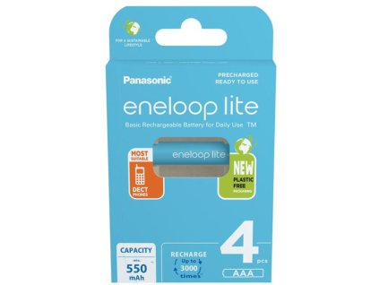 Eneloop lite• Prednabitá NiMH batéria pripravená na použitie pre zariadenia s nízkymi a strednými požiadavkami na energiu• Veľkosť: AAA/mikro; kapacita: 550 mAh• Dá sa dobiť...